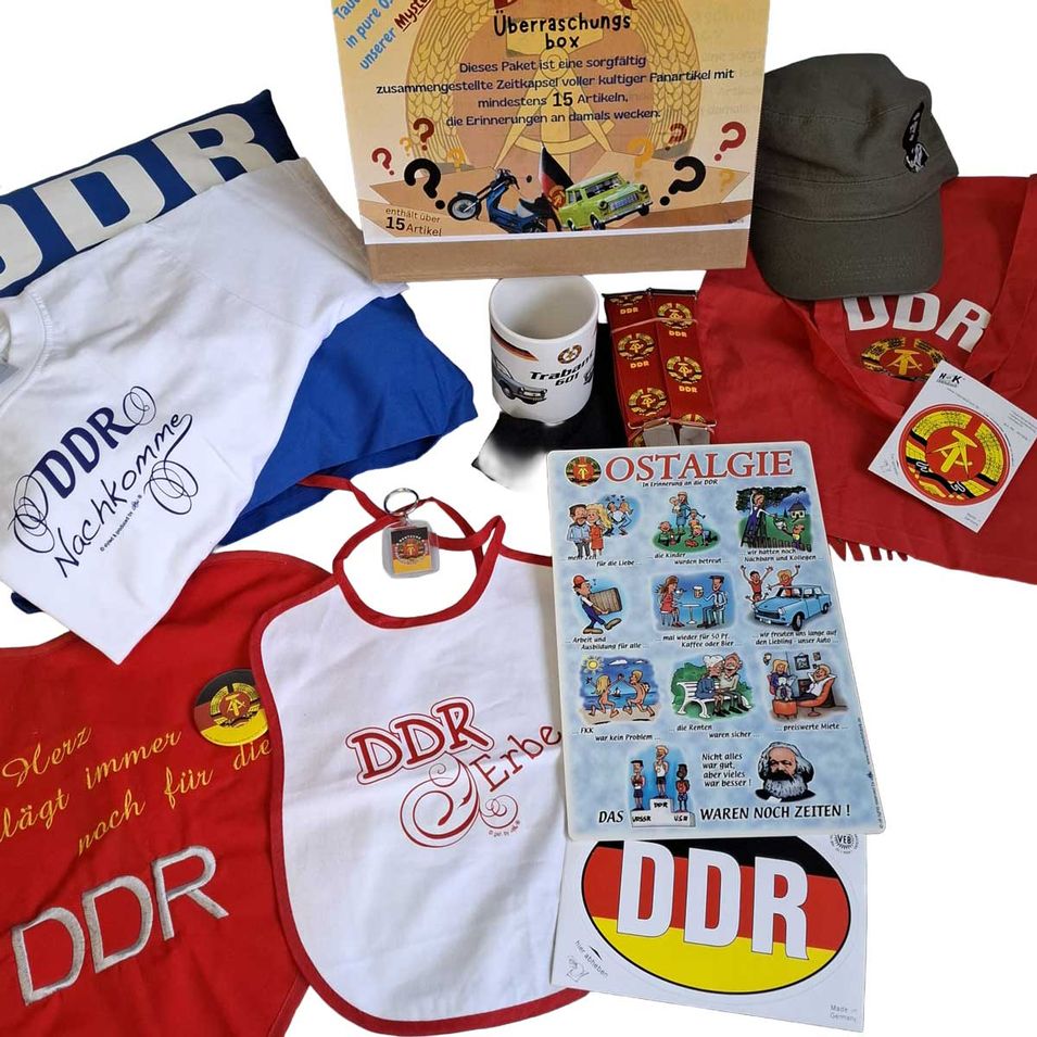 Überraschungsbox für DDR OSTALGIE-Fans - BW-Tasche Tasse T-shirt Aufkleber....- 15 Artikel - 80526