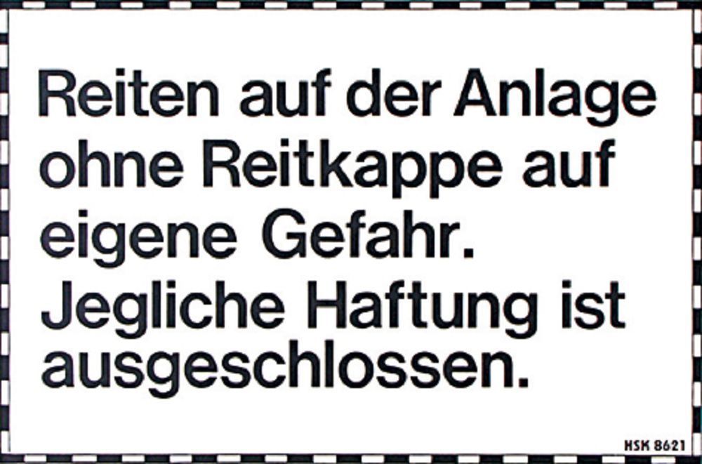 PST- Schild "Reiten auf der Anlage ohne Reitkappe..." Gr. 30 X 20 cm