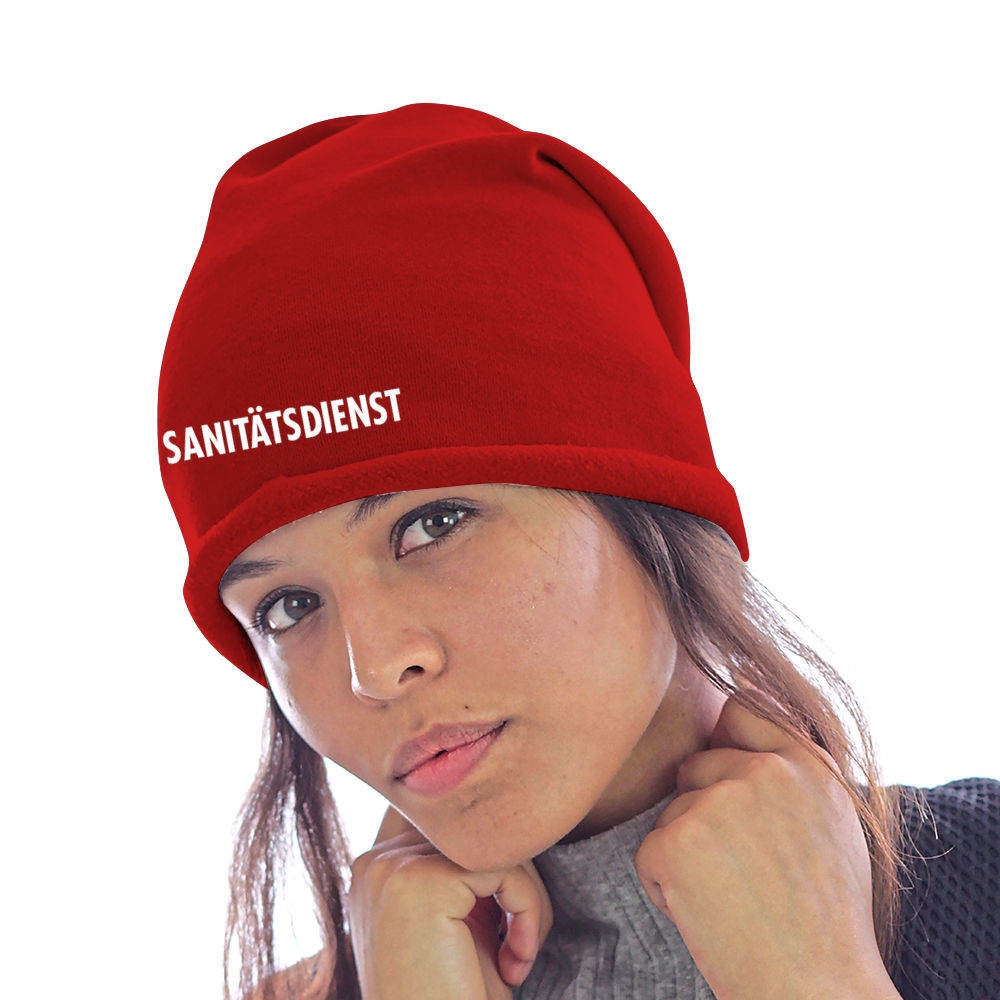 Longbeanie Slouch-Beanie Sommerbeanie mit Textildruck - SANITÄTSDIENST - SB55004 rot