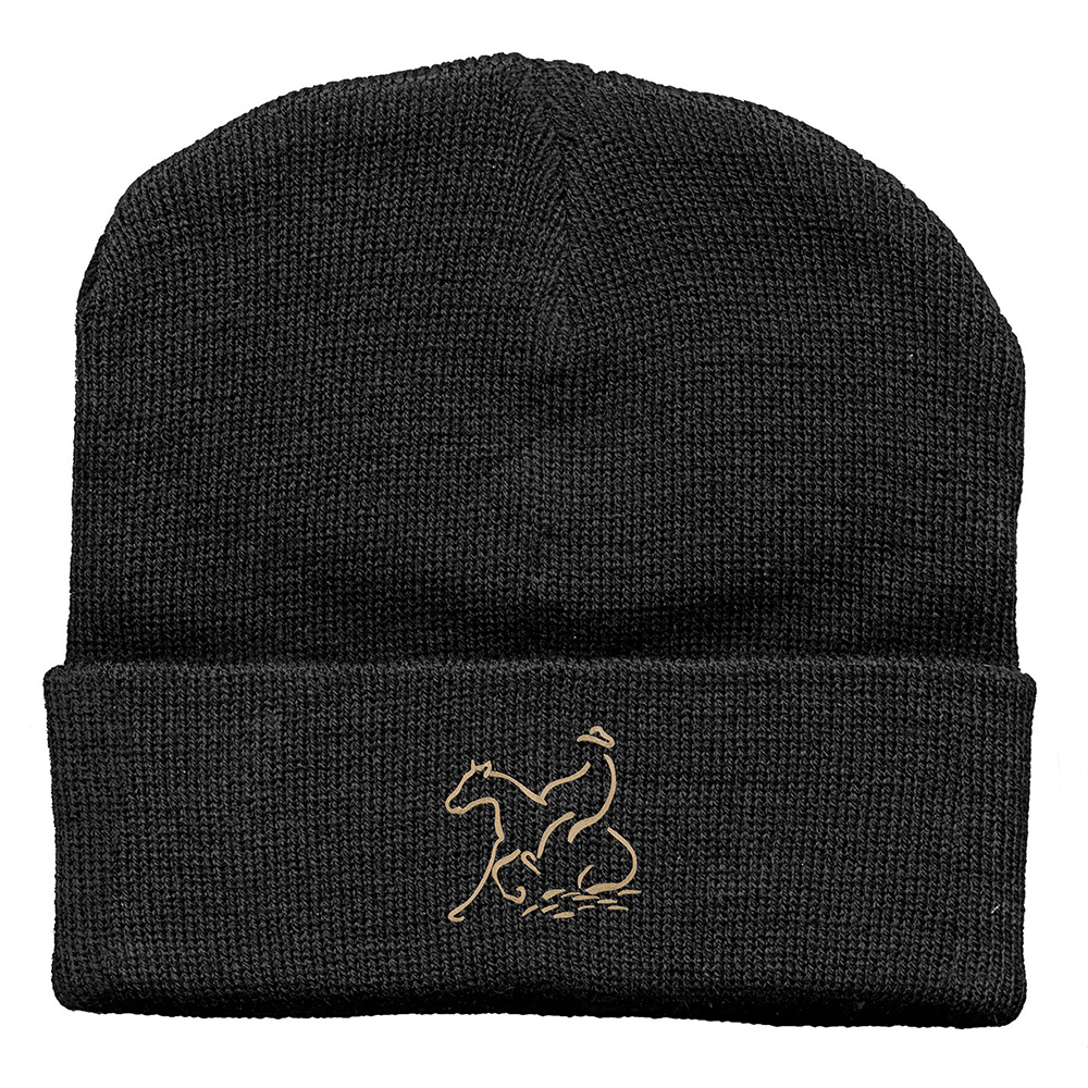 1 trendige Strickmütze aus Polyacryl, mit edler Direkteinstickung und Struktur in Oberfläche.