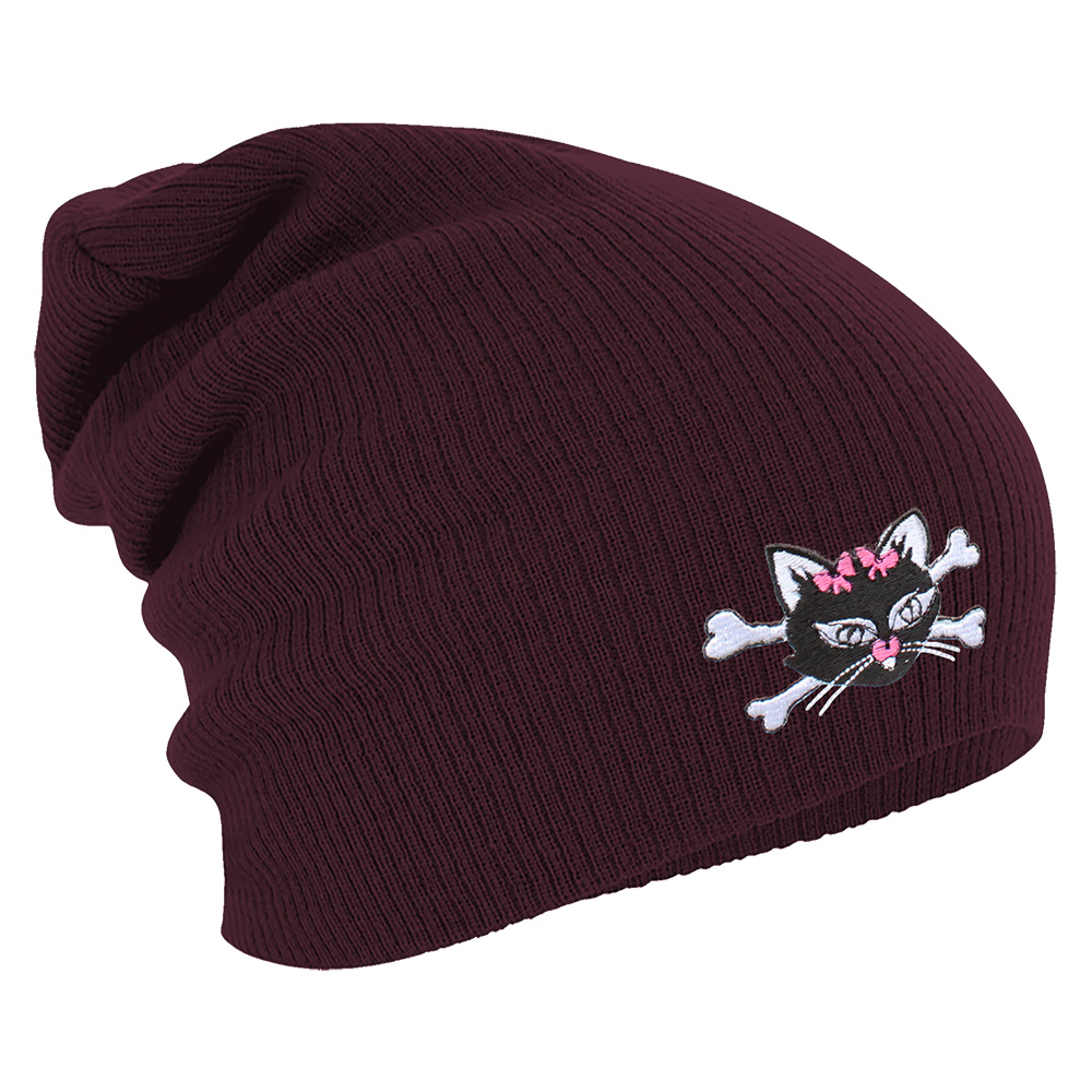 Longbeanie Slouch-Beanie Wintermütze Katze Knochen 54462 bordeaux