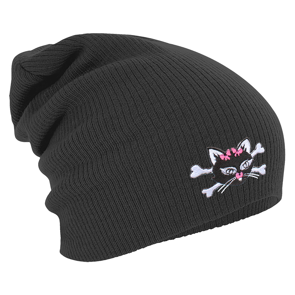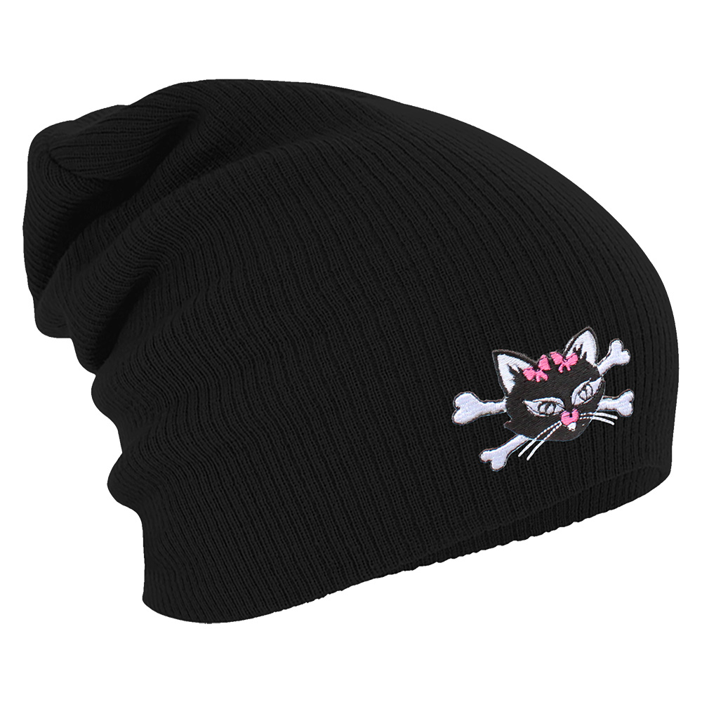 Longbeanie Slouch-Beanie Wintermütze Katze Knochen 54462 schwarz