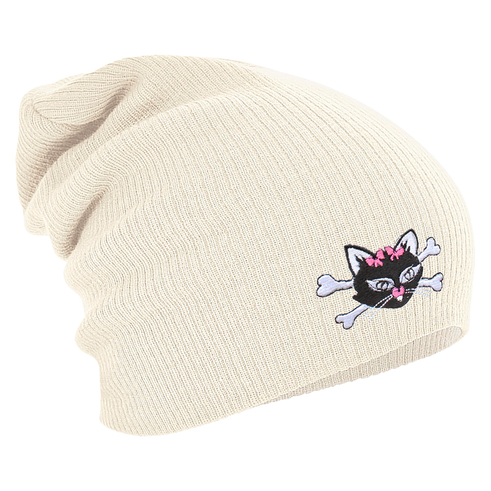 Longbeanie Slouch-Beanie Wintermütze Katze Knochen 54462 natur
