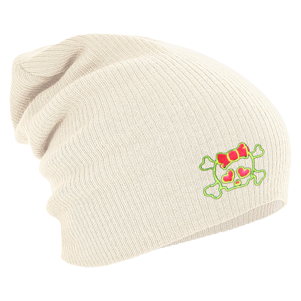 Longbeanie Slouch-Beanie Mütze Totenkopf Schleife 54469 natur