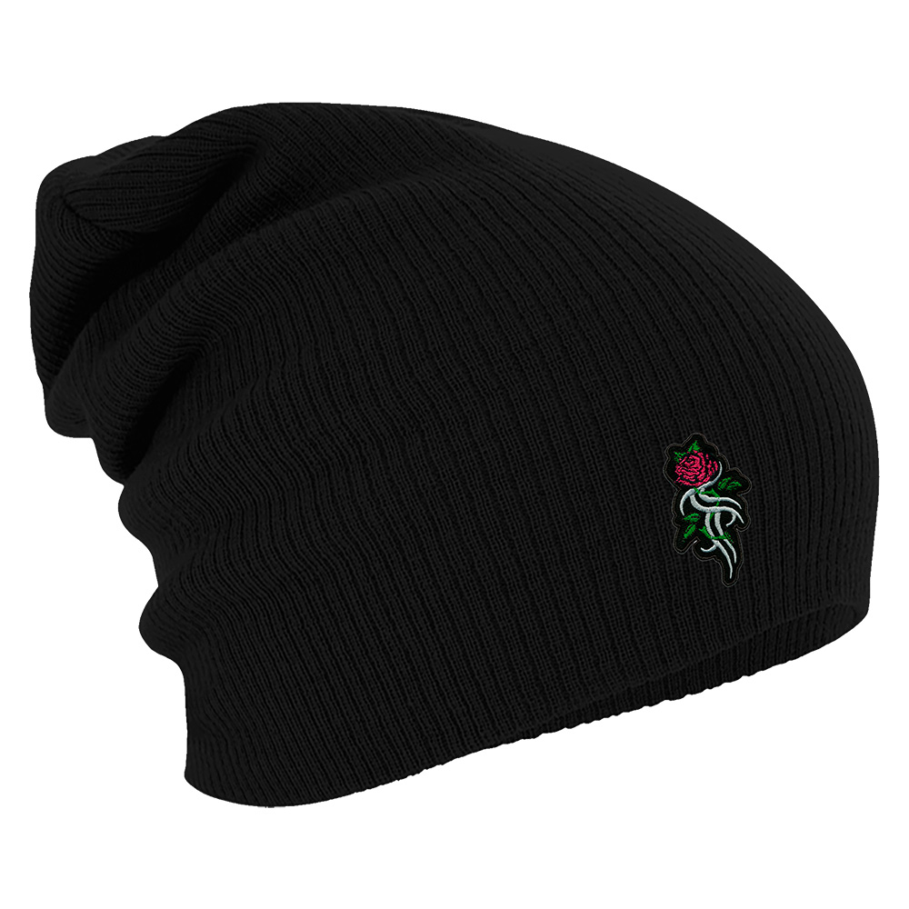 Longbeanie Slouch-Beanie Mütze Blume Pflanze Rose 54474 schwarz