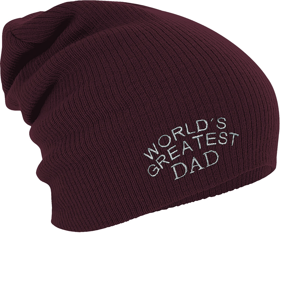 Longbeanie Slouch-Beanie Mütze Worlds greatest Dad 54518 bordeaux