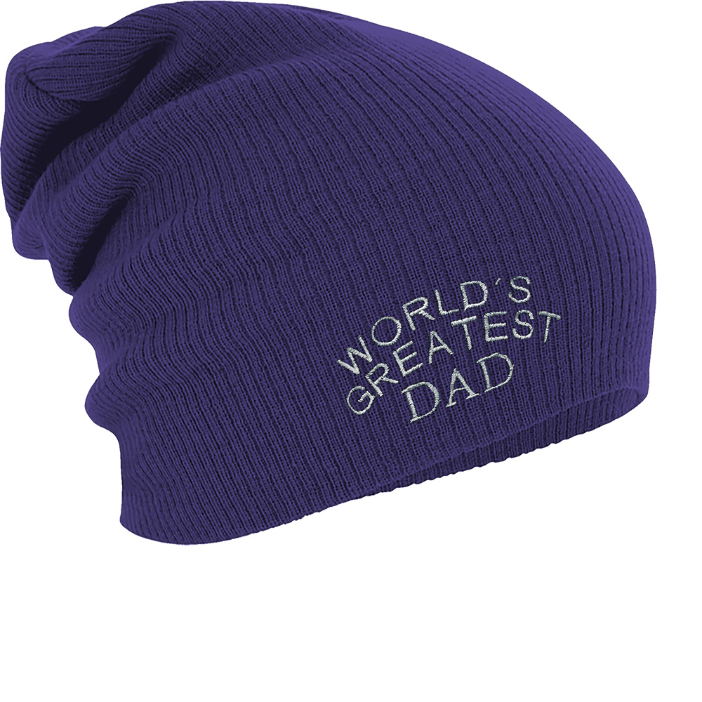 Longbeanie Slouch-Beanie Mütze Worlds greatest Dad 54518 lila