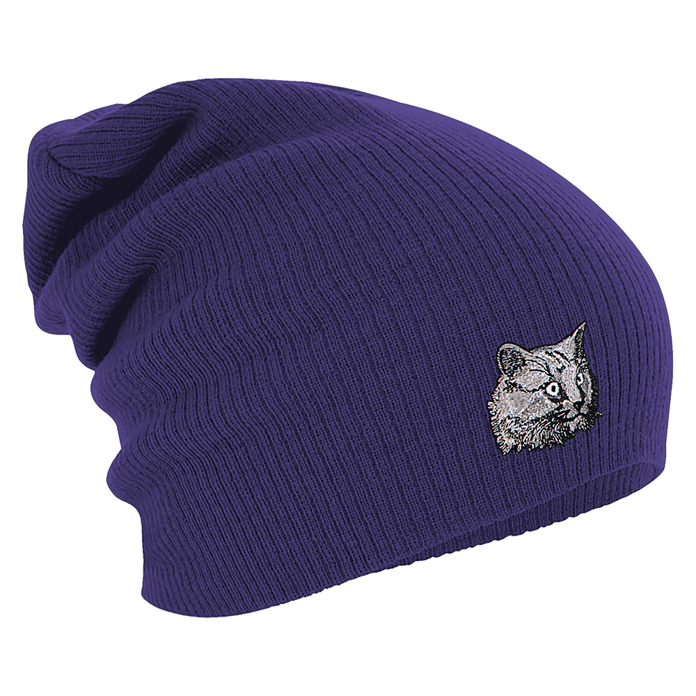 Longbeanie Slouch-Beanie Wintermütze Katze grau 54849 lila