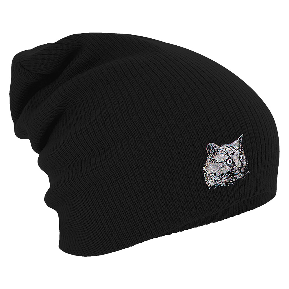 Longbeanie Slouch-Beanie Wintermütze Katze grau 54849 schwarz