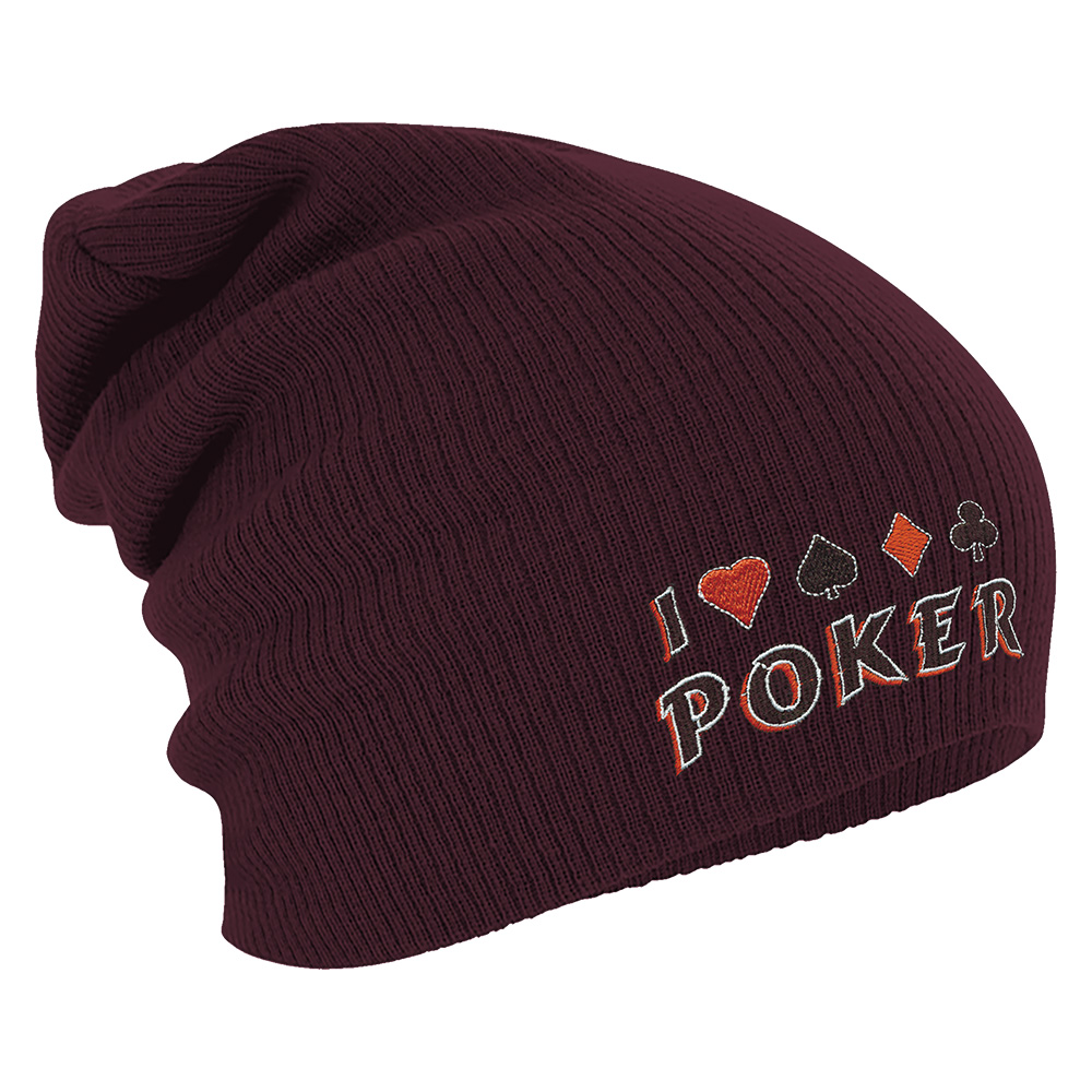 Longbeanie Slouch-Beanie Wintermütze I love Poker 54864 bordeaux