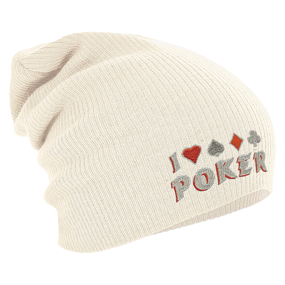 Longbeanie Slouch-Beanie Wintermütze I love Poker 54864 natur
