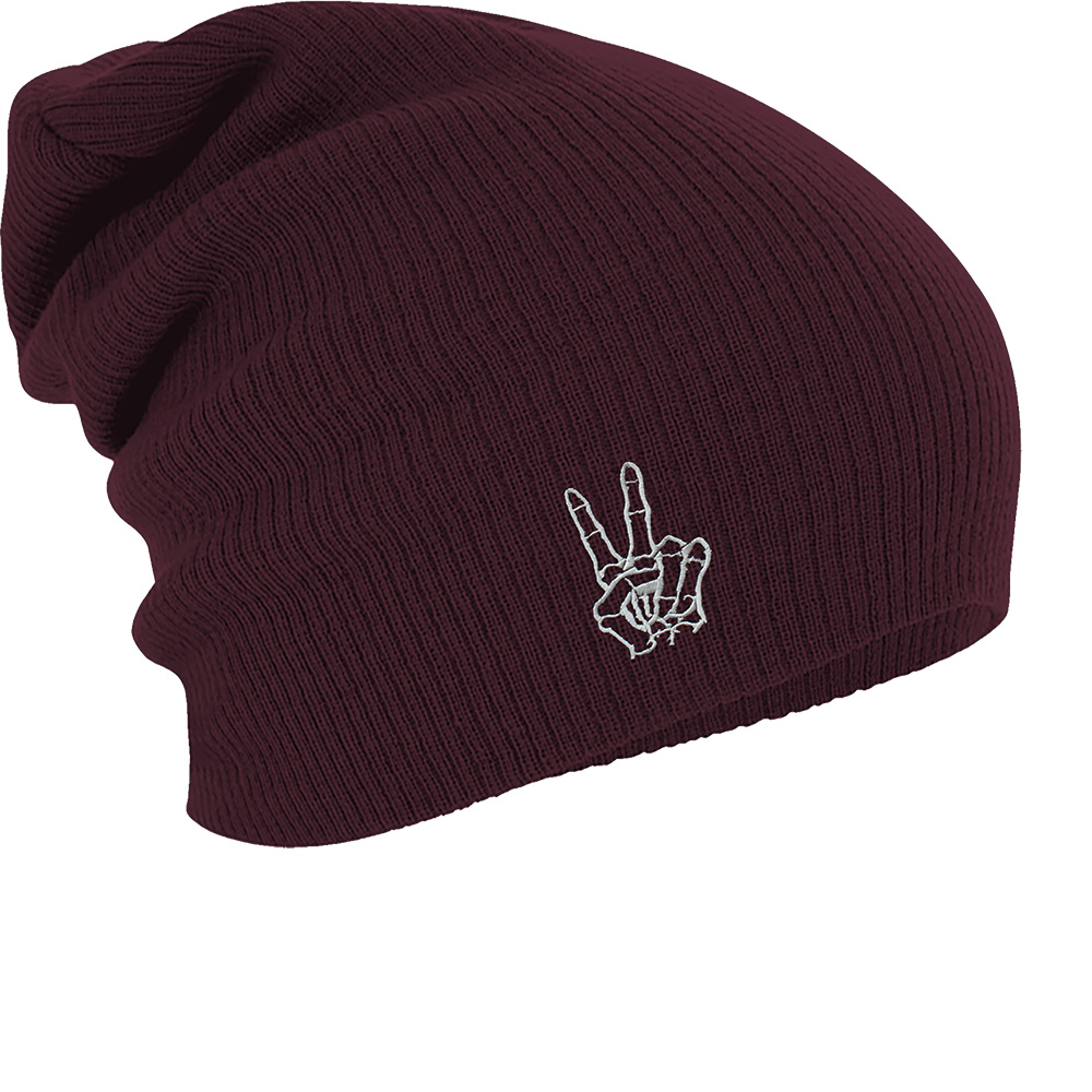 Longbeanie Slouch-Beanie Wintermütze Handzeichen Peace 54453 bordeaux