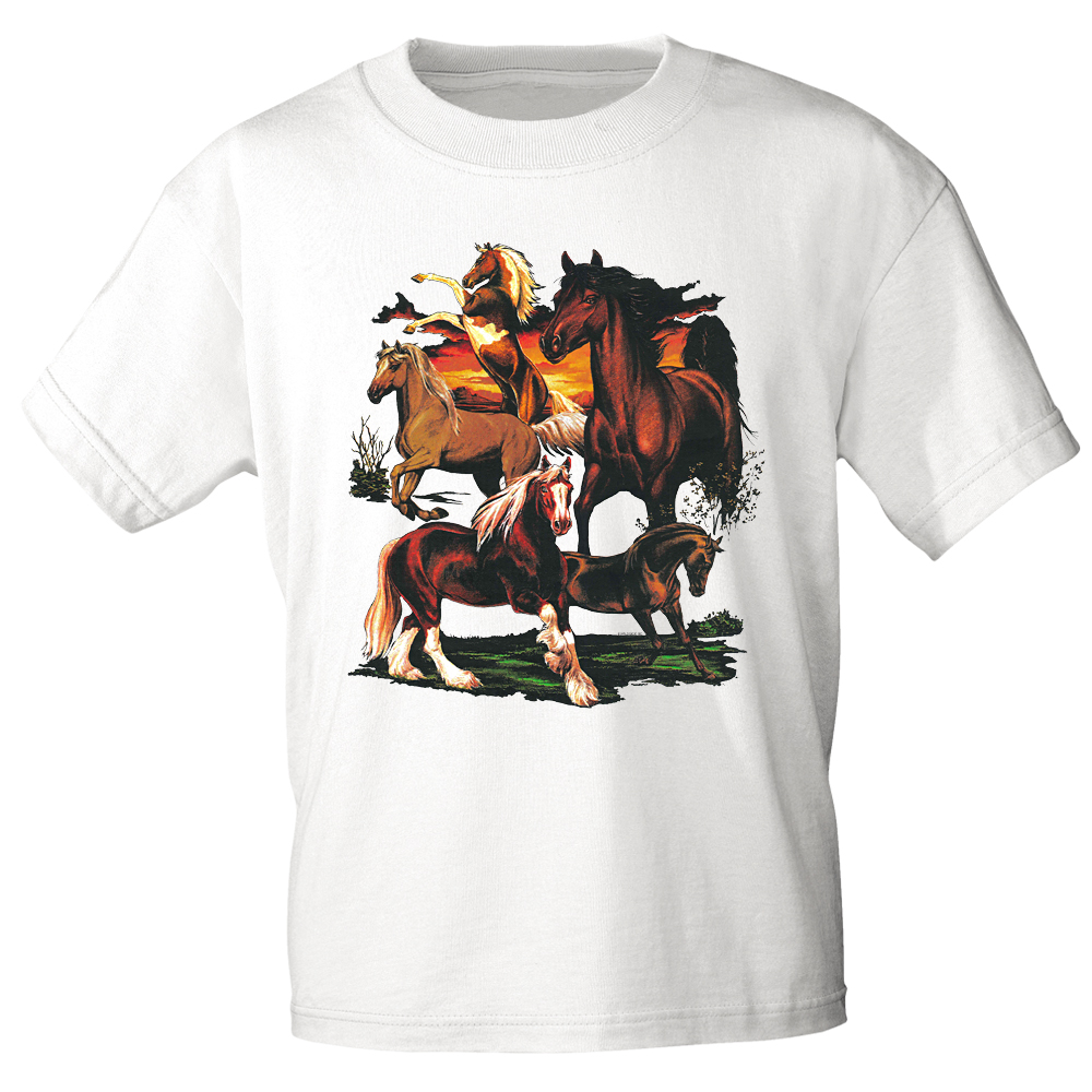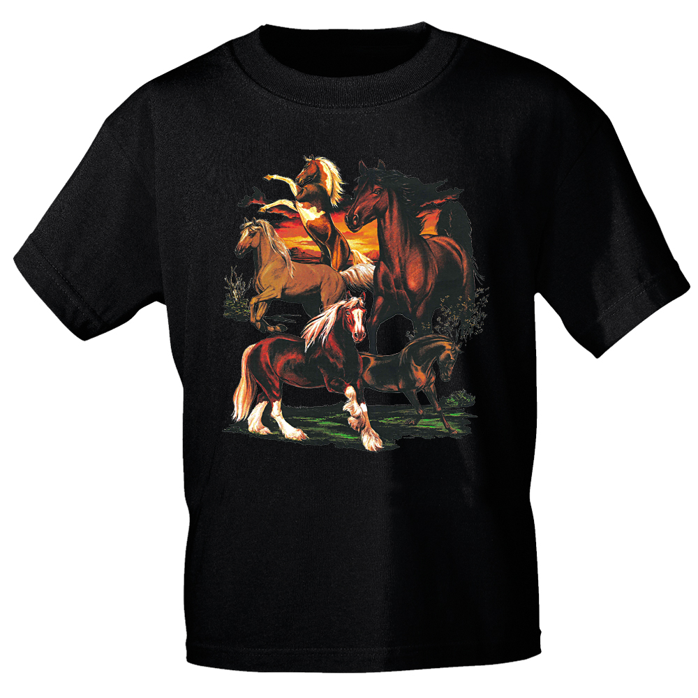 T-Shirt mit Print - Pferde Herde Horses Kaltblut Hengst - 12668 Gr. S-3XL