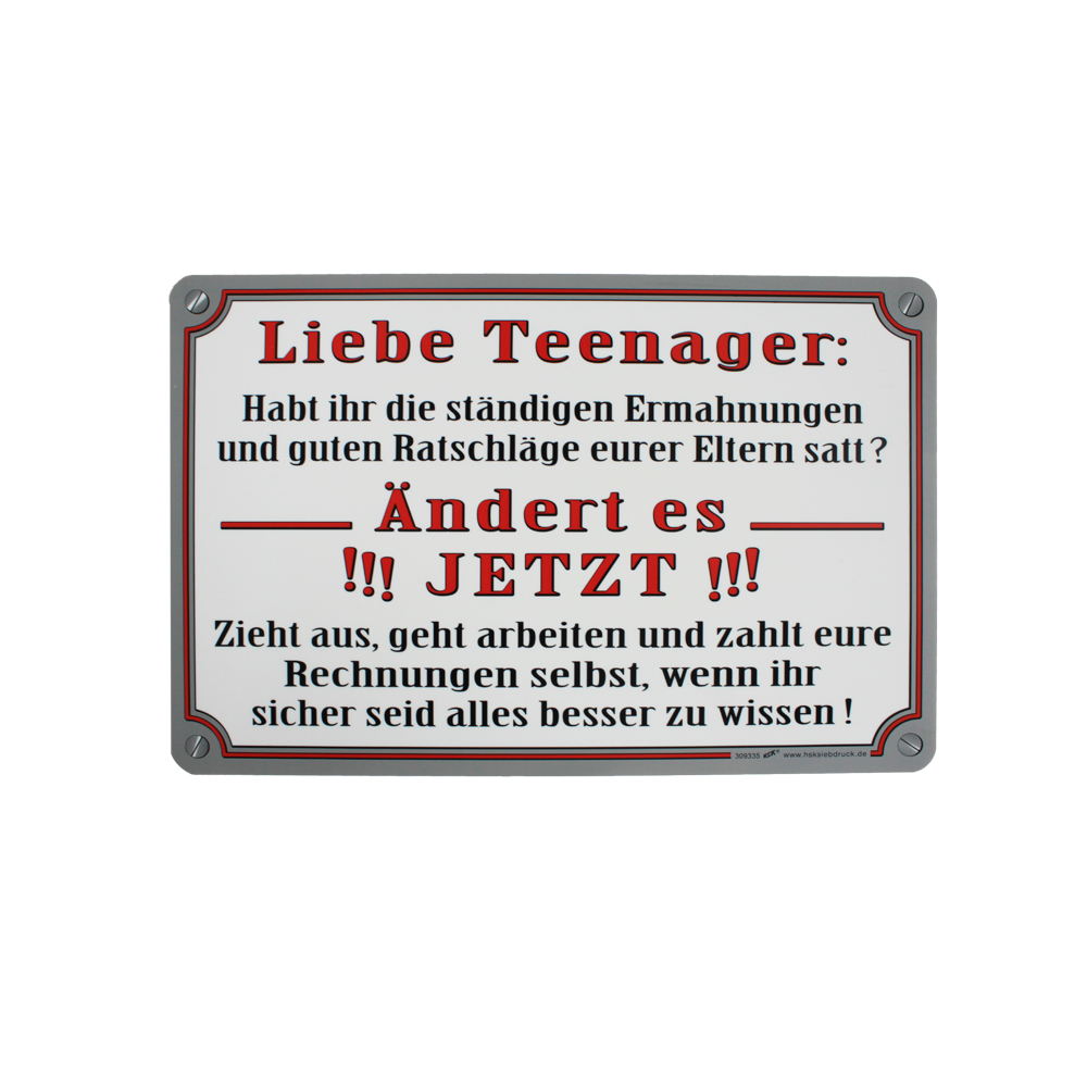 Schild Spaß-Schild - Liebe Teenager... - 309335 - 30 x 20 cm