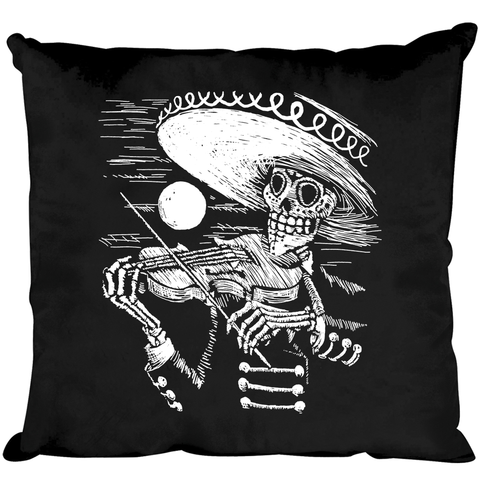Kissen Dekokissen mit Print Musiker Skelett mit Geige Sombrero Skull - K12997 schwarz