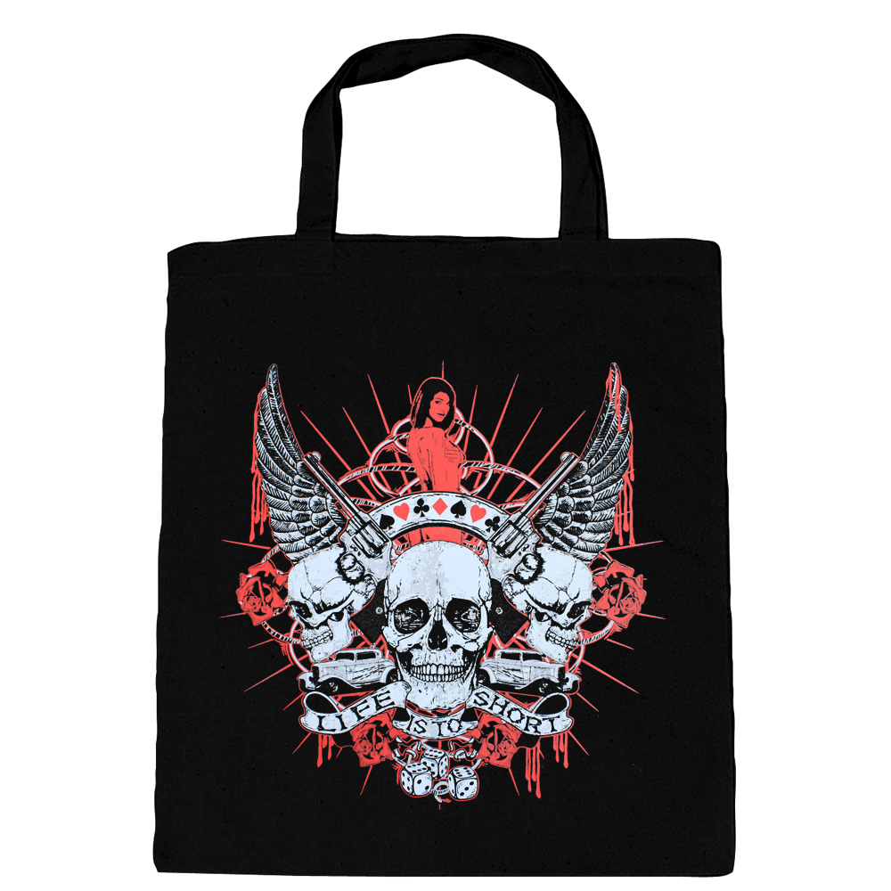 Baumwolltasche mit Print Life is to short Totenkopf Skull - B10223 schwarz