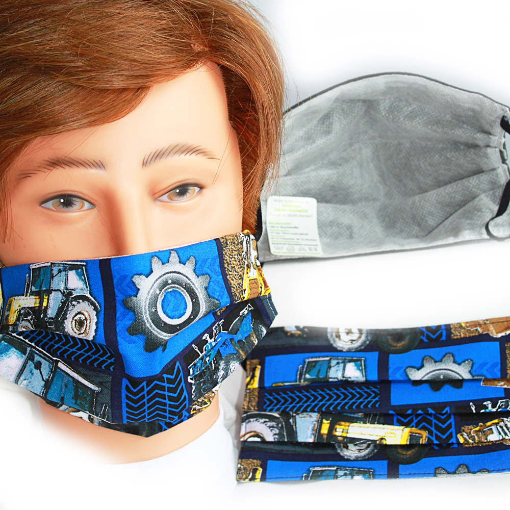 Design Maske aus Baumwolle mit zertifiziertem Innenvlies - Traktor Trekker - 15478 + Gratiszugabe
