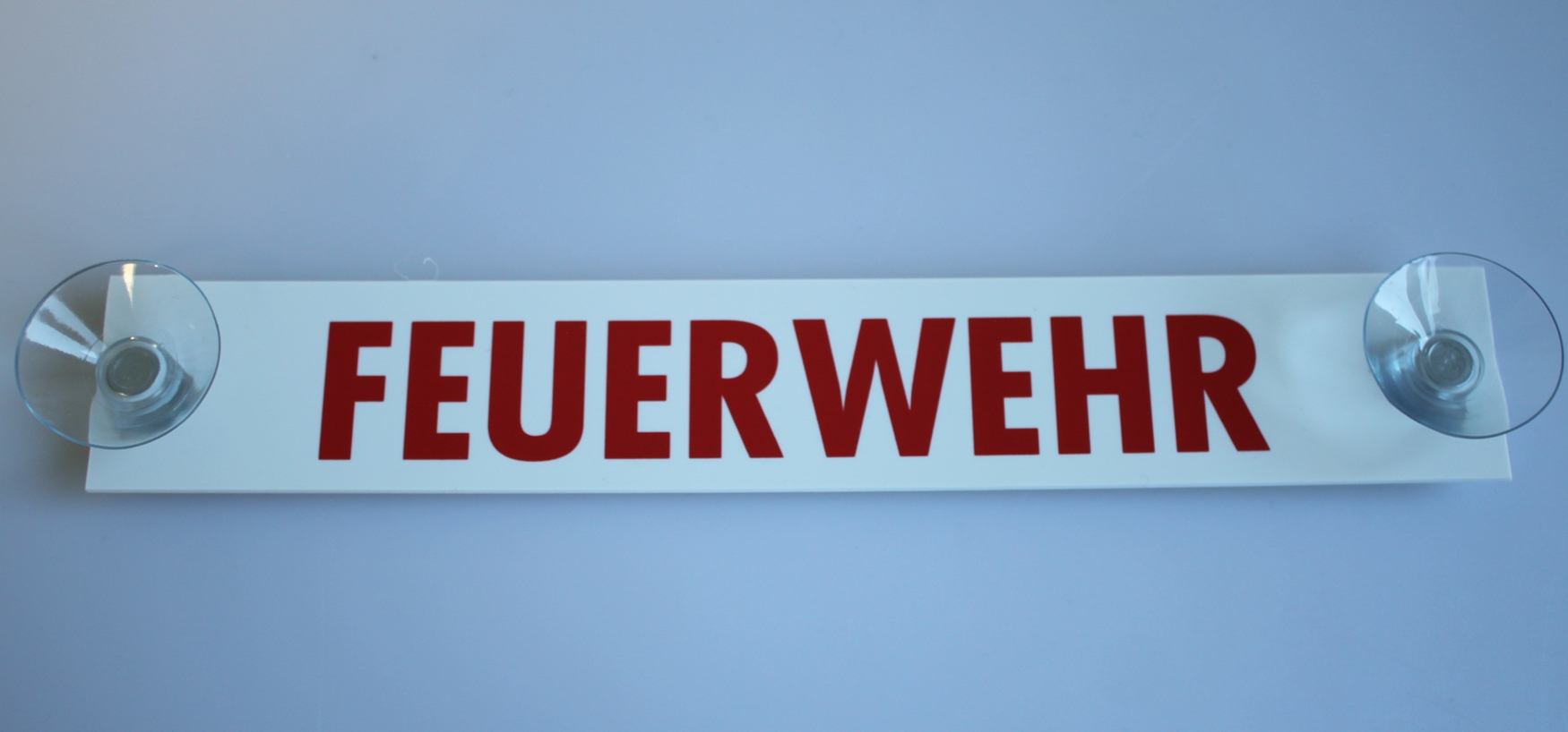 Schild mit 2 Saugnäpfen - Feuerwehr - Gr. ca. 21cm x 4,3cm - 308039/1