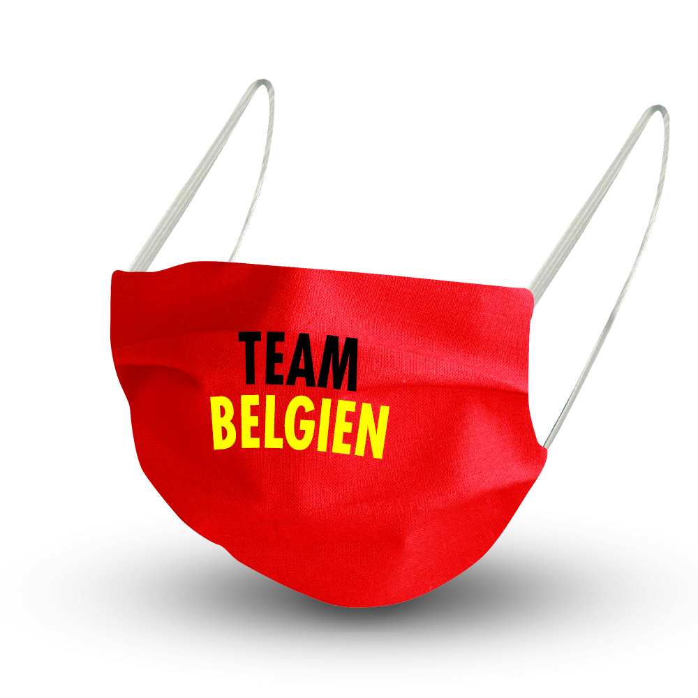 Design Maske in ROT aus Baumwolle mit zertifiziertem Innenvlies - TEAM BELGIEN - 15742 + Gratiszugabe