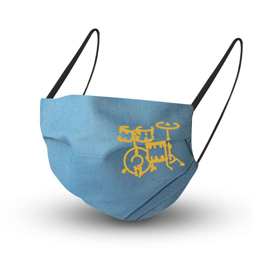 Baumwollmaske in HELLBLAU mit zertifiziertem Innenvlies - Schlagzeug - 15944 + Gratiszugabe