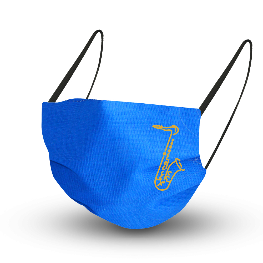 Baumwollmaske in ROYALBLAU mit zertifiziertem Innenvlies - Goldenes Saxophon - 15946 + Gratiszugabe