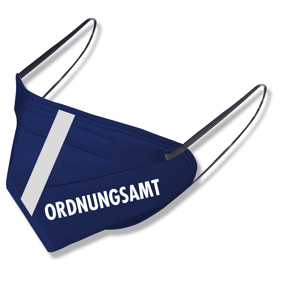 1 Maske in Dunkelblau mit fluoreszierenden Streifen und Print - ORDNUNGSAMT - 15297
