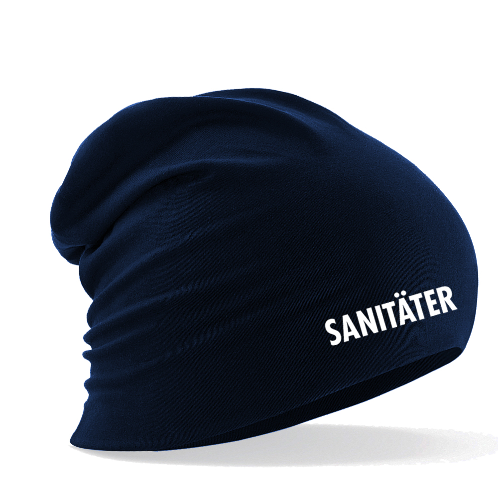 Longbeanie Slouch-Beanie Sommerbeanie mit Textildruck - SANITÄTER - 54449 blau