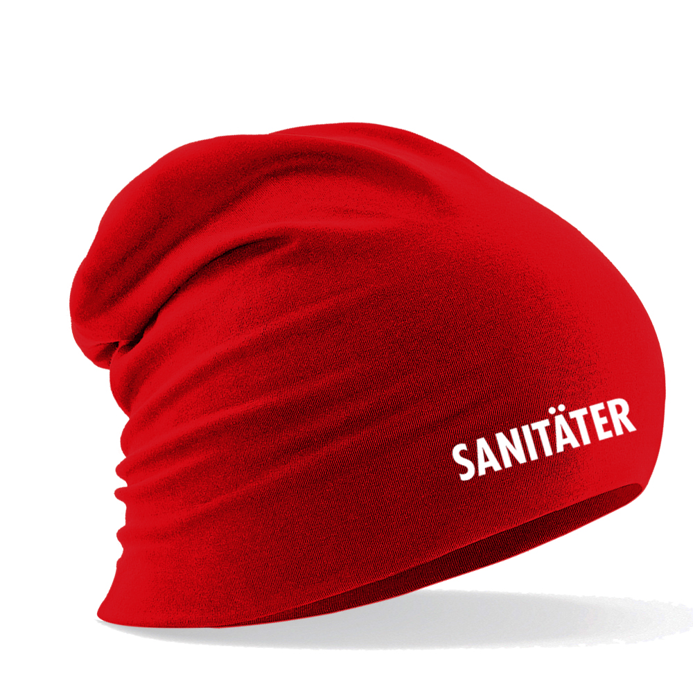 Longbeanie Slouch-Beanie Sommerbeanie mit Textildruck - SANITÄTER - 54449 rot