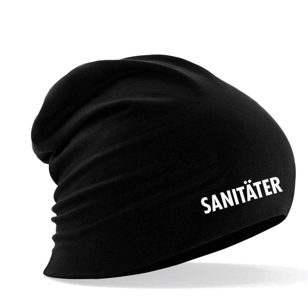 Longbeanie Slouch-Beanie Sommerbeanie mit Textildruck - SANITÄTER - 54449 schwarz