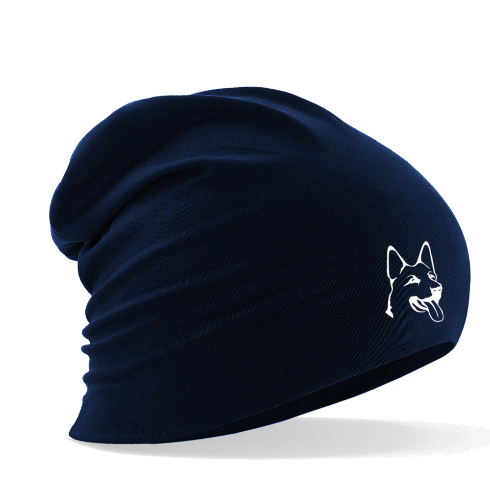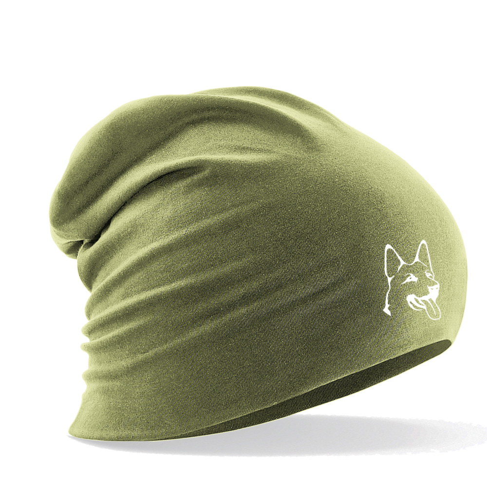 Longbeanie Slouch-Beanie Sommerbeanie mit Textildruck Wappen - SCHÄFERHUND - SB55055