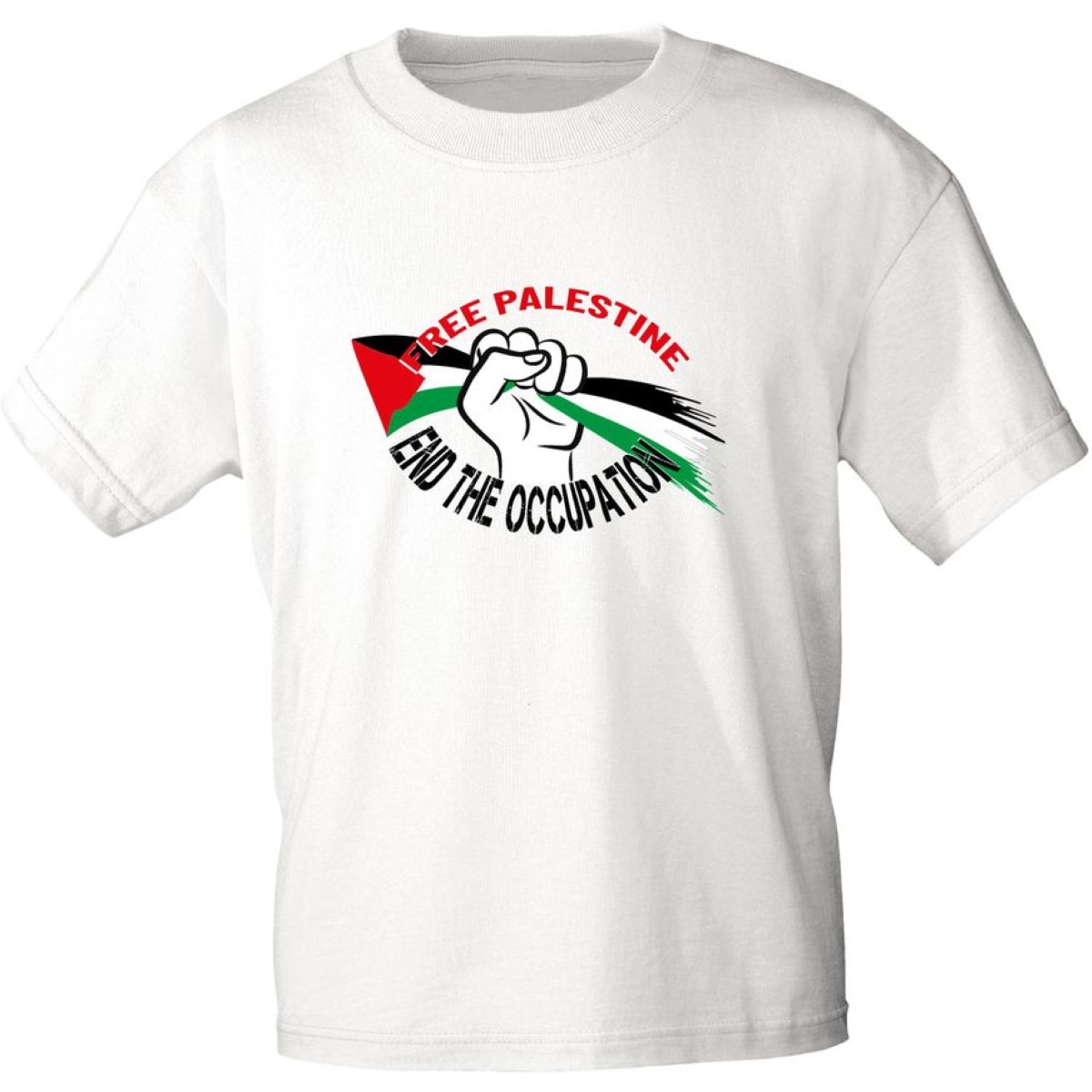 T-Shirt mit Print - Free Palestine End the Occupation - 15777 weiß Gr. S
