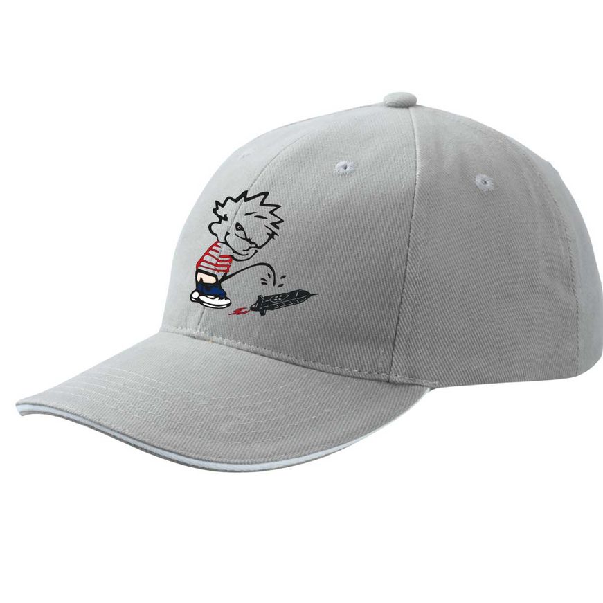 Baseballcap mit Textildruck - Pinkelmännchen gegen Drohnen - 52038 hellgrau