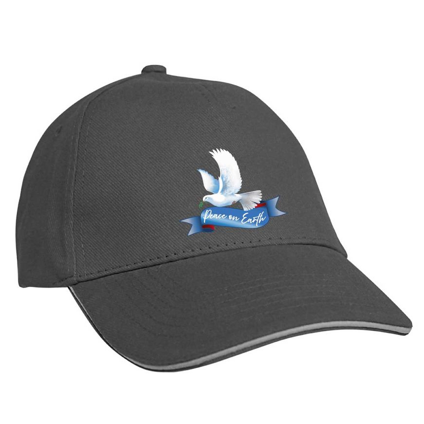 Baseballcap mit Textildruck - Peace on Earth - Friedenstaube - 52040 Grau