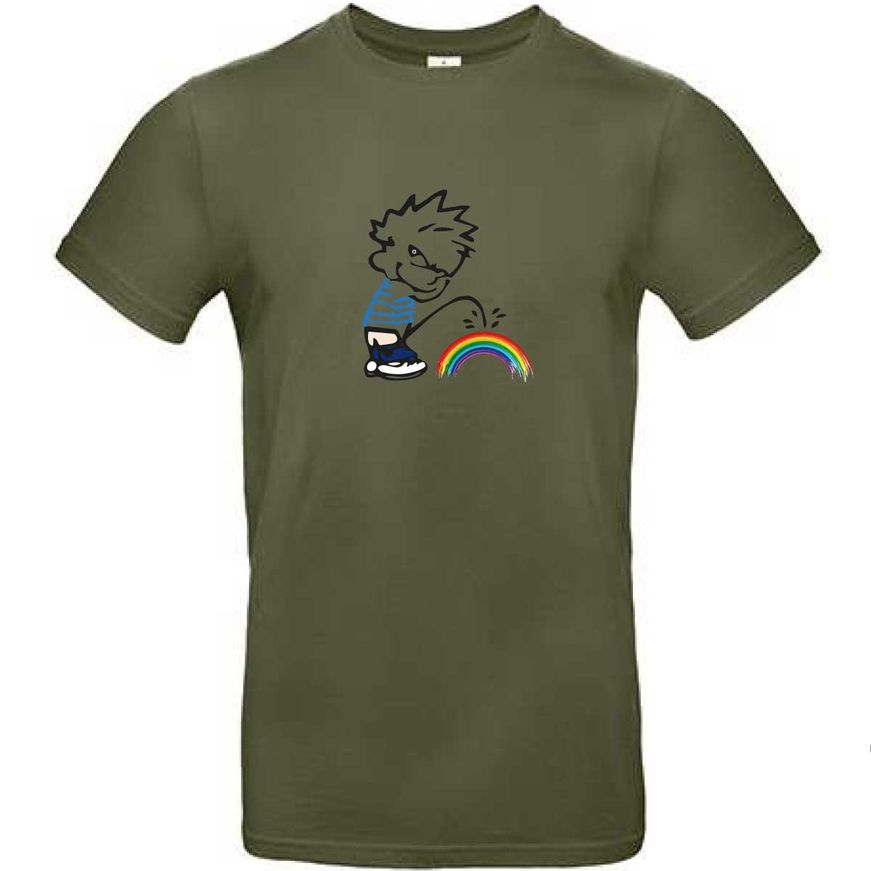 T-Shirt mit Print - Pinkelmännchen auf Regenbogen - 85171 Oliv Gr. S-2XL
