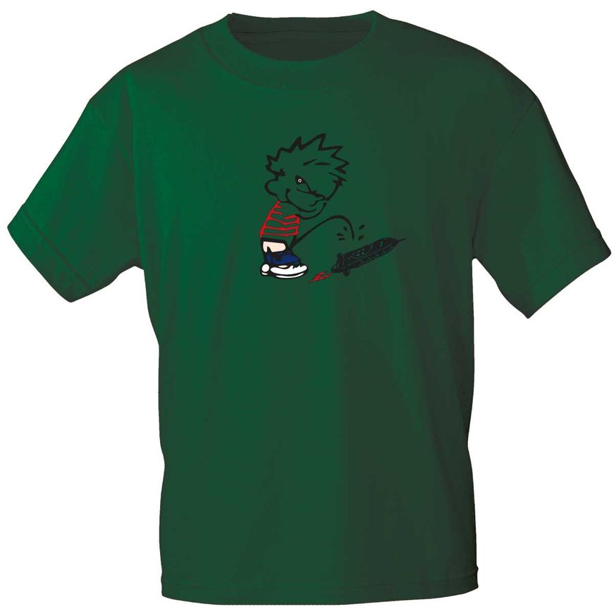 T-Shirt mit Print - Pinkelmännchen gegen Drohnen - 85174 dunkelgrün Gr. S