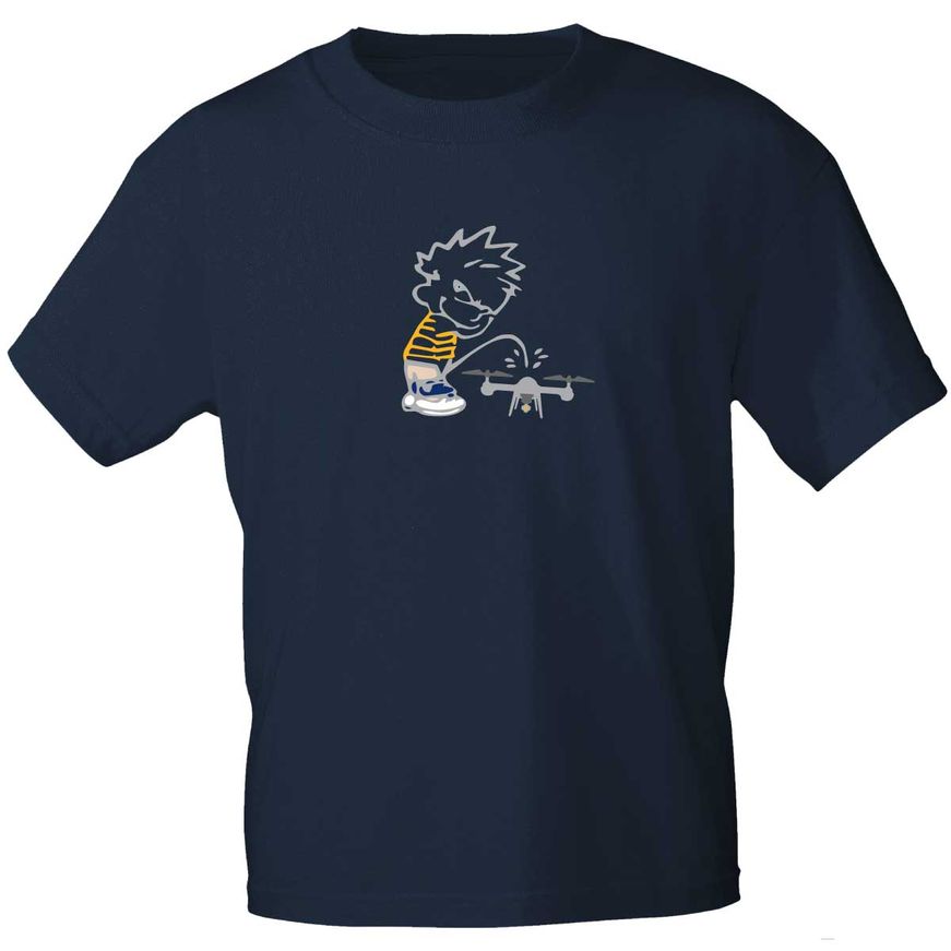 T-Shirt mit Print - Pinkelmännchen gegen Drohnen - 85180 Dunkelblau Gr. S-2XL
