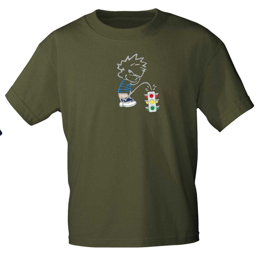 T-Shirt mit Print - Pinkelmännchen gegen Ampel - 85182 Olivgrün Gr. S-2XL