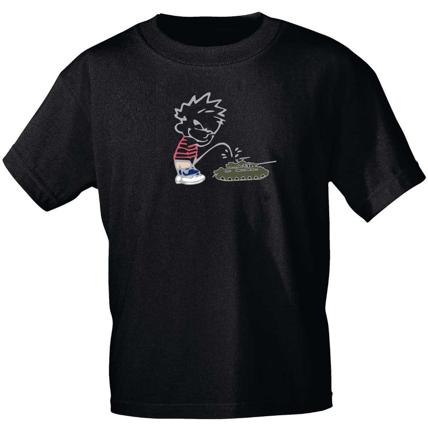T-Shirt mit Print - Pinkelmännchen gegen Panzer - 85183 Schwarz Gr. S-2XL
