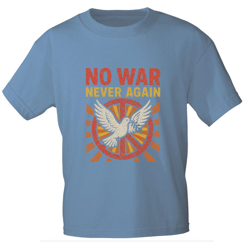 T-Shirt mit Print - NO WAR NEVER AGAIN Friedenstaube - 85248 Rauchblau Denim Gr. S