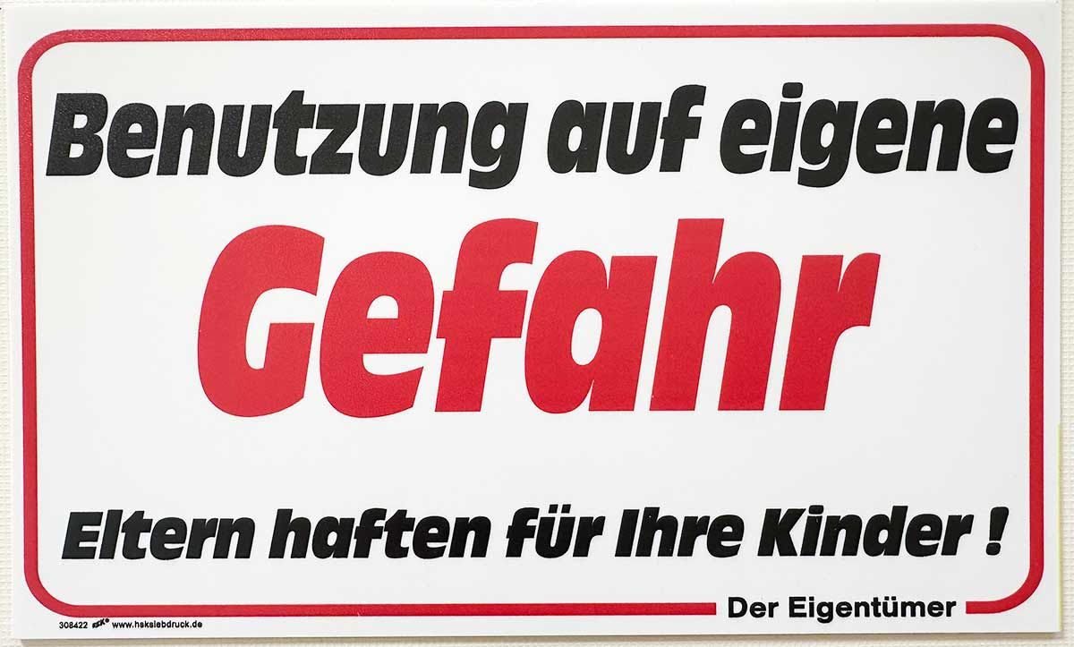 Hinweisschild - Benutzung auf eigene Gefahr - Gr. ca. 25 x 15 cm - 308422-4