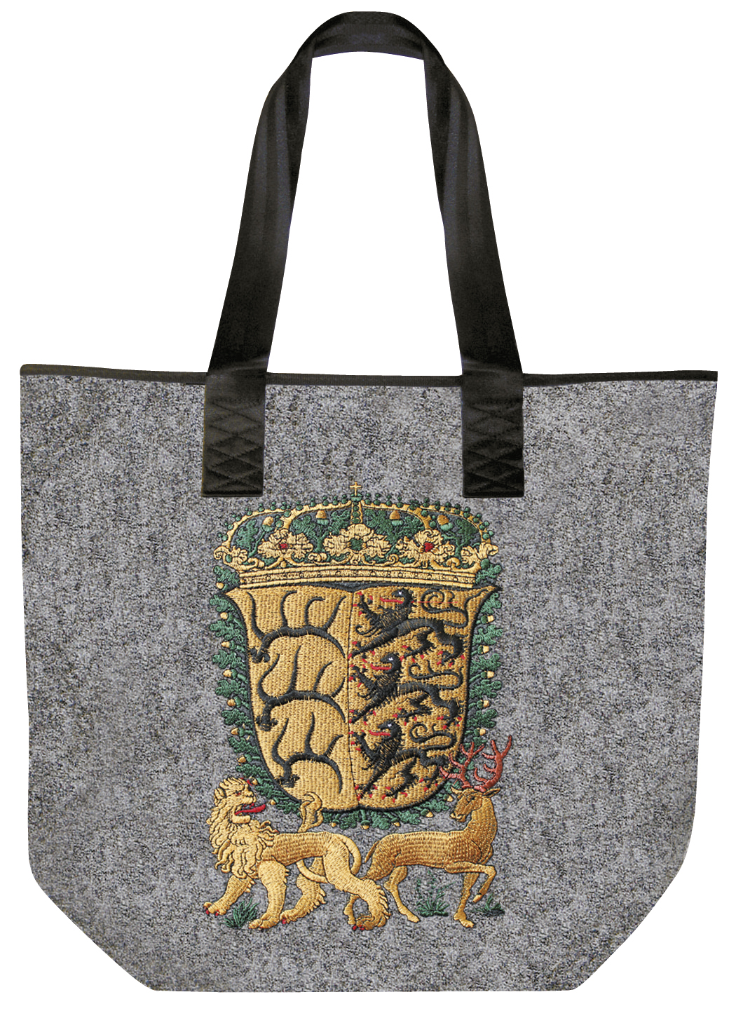 Hochwertige Filztasche aus Wollfilz mit großer einseitiger Einstickung.