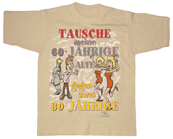 T-Shirt mit Print - Tausche meine 60jährige Alte gegen zwei 30jährige - 09917 beige - Gr. S-XXL