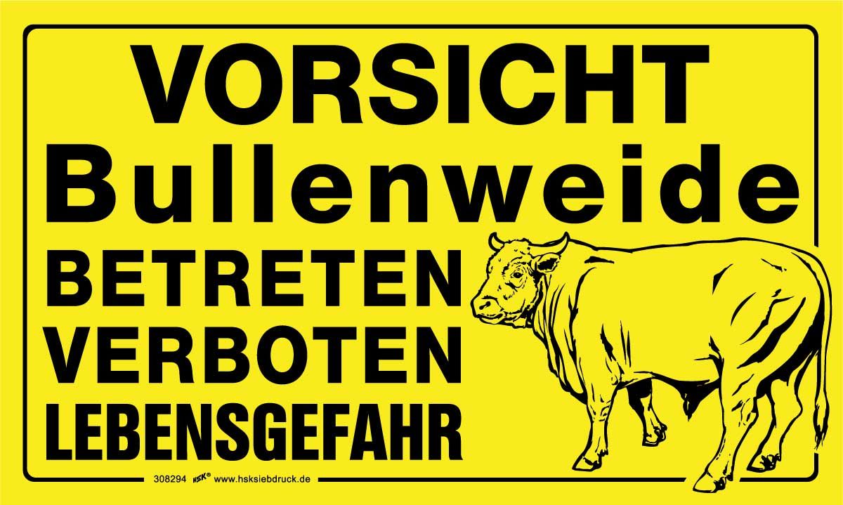 Schild - Vorsicht Bullenweide - Gr. ca. 25 x 15cm - Tiere Landwirtschaft - 308294