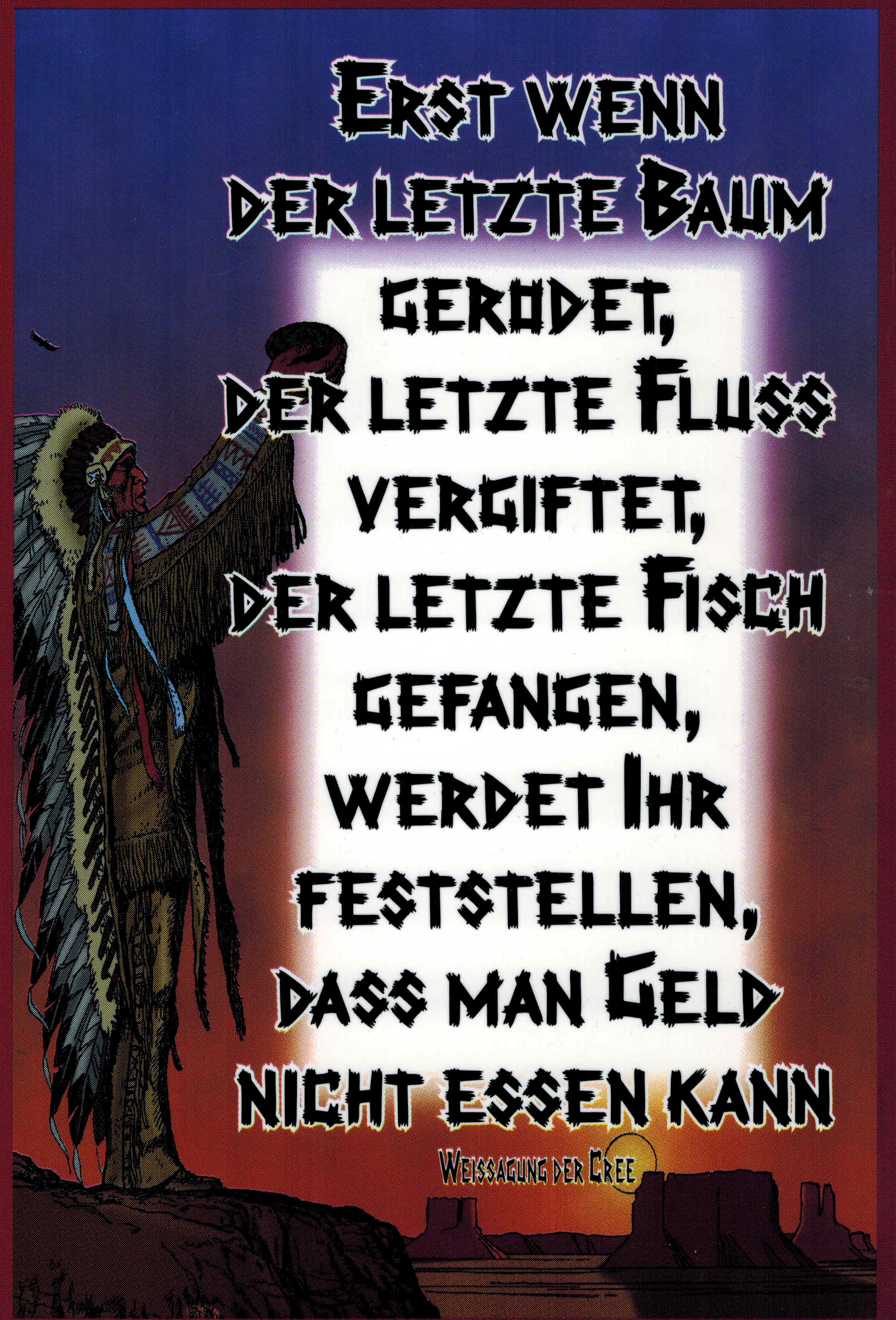 Schild mit Spruch - Erst wenn der letzte ... - Gr. 30 x 20 cm - 309070 - Indianer