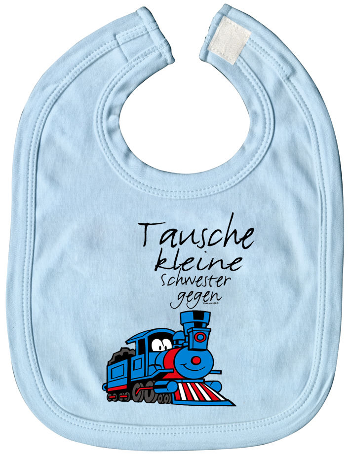 Baby-Lätzchen mit Druckmotiv - Tausche kleine Schwester... - 07022 - hellblau