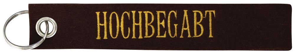 Dieser hochwertige Filz-Schlüsselanhänger hat die Einstickung: "HOCHBEGABT"