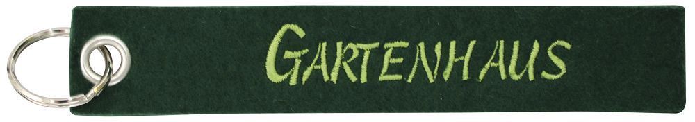 Dieser hochwertige Filz-Schlüsselanhänger hat die Einstickung: "GARTENHAUS"