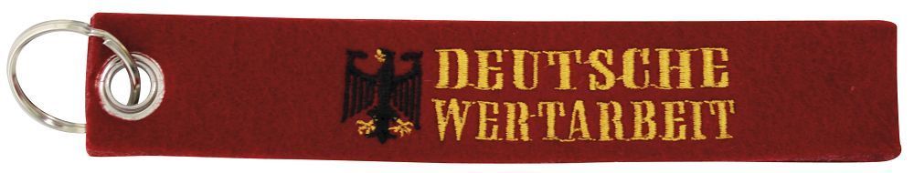 Dieser hochwertige Filz-Schlüsselanhänger hat die Einstickung: "DEUTSCHE WERTARBEIT"
