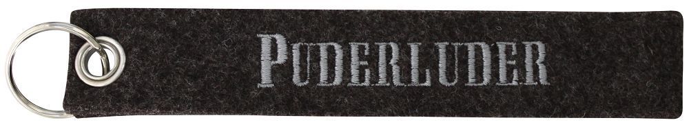 Dieser hochwertige Filz-Schlüsselanhänger hat die Einstickung: "PUDERLUDER"
