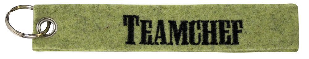 Dieser hochwertige Filz-Schlüsselanhänger hat die Einstickung: "TEAMCHEF"